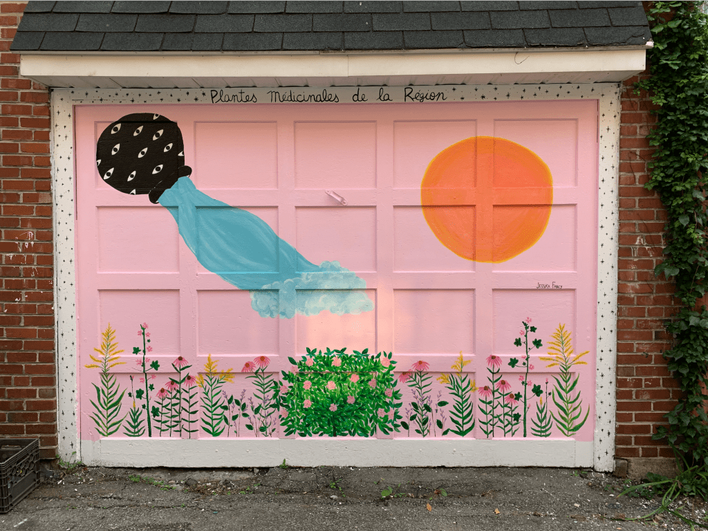 “Plantes médicinales de la régions “ translates to medicinal plants of the region. This mural was painted in the late summer of 2020 and resides in Tiohtià:ke, Montréal in the neighborhood of Villeray.